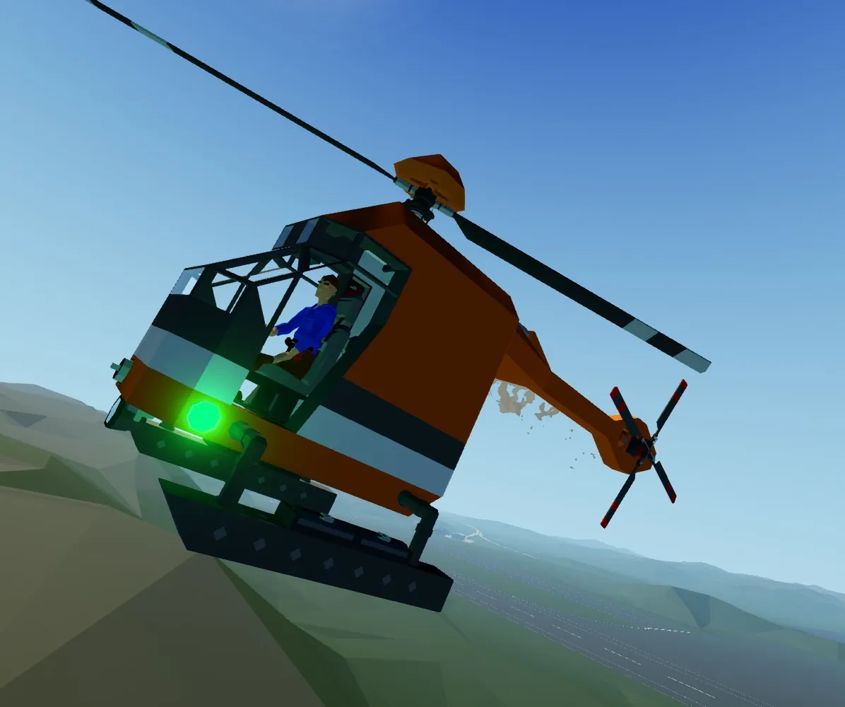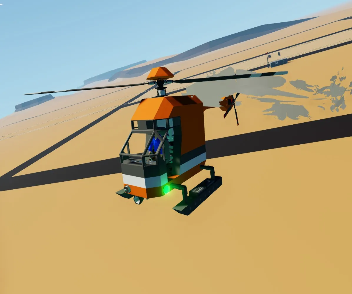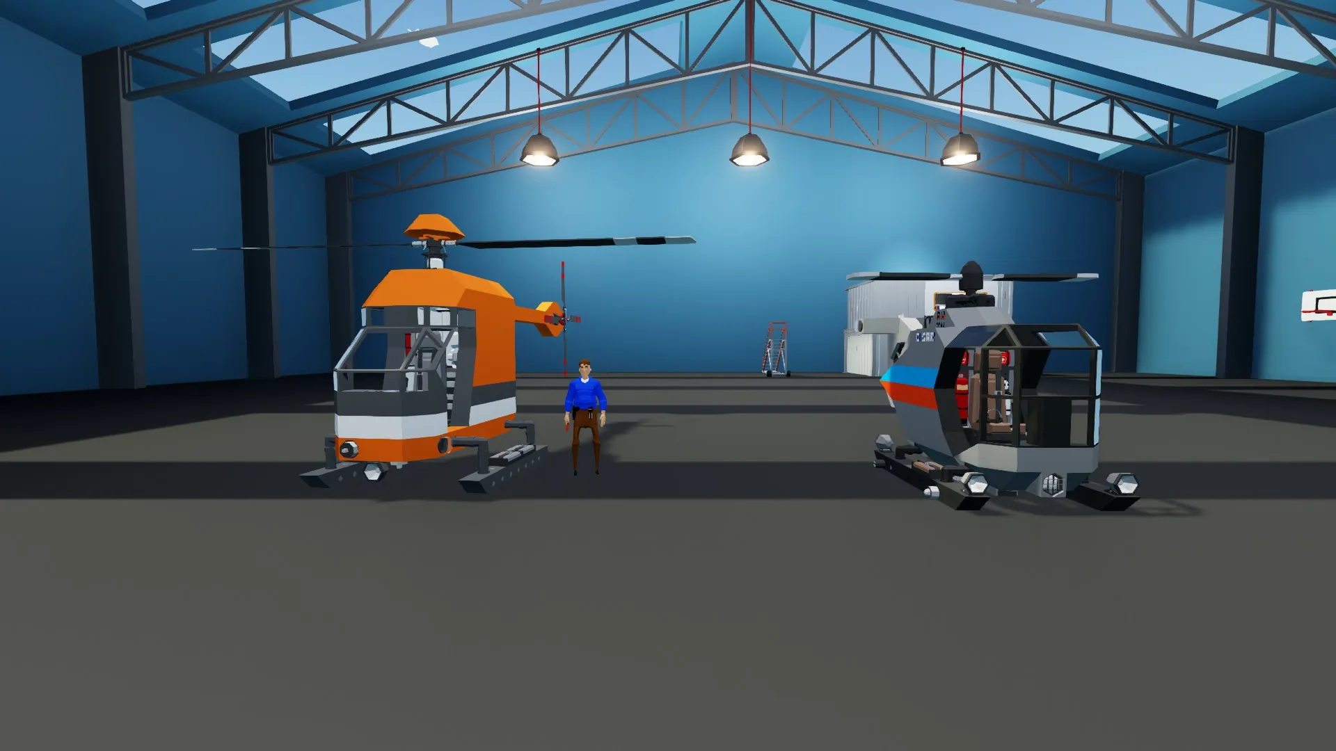 The Manta 10L is a light utility helicopter. Features: 4 passenger seats, a fire extinguisher and repair tool, and a small mounted spotlight.