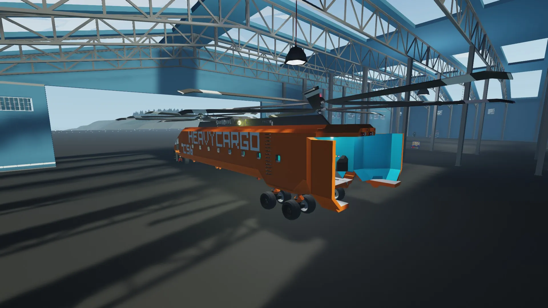 It's designation "C5b" can be broken down into three simple components "C" for Cargo (the type of work it is designed for), "5" indicating it can haul 5 (3 inside the fuselage and 2 attached via ropes on the underside) standard Stormworks containers, and "b" is for Basic, since this helicopter is nothing fancy.