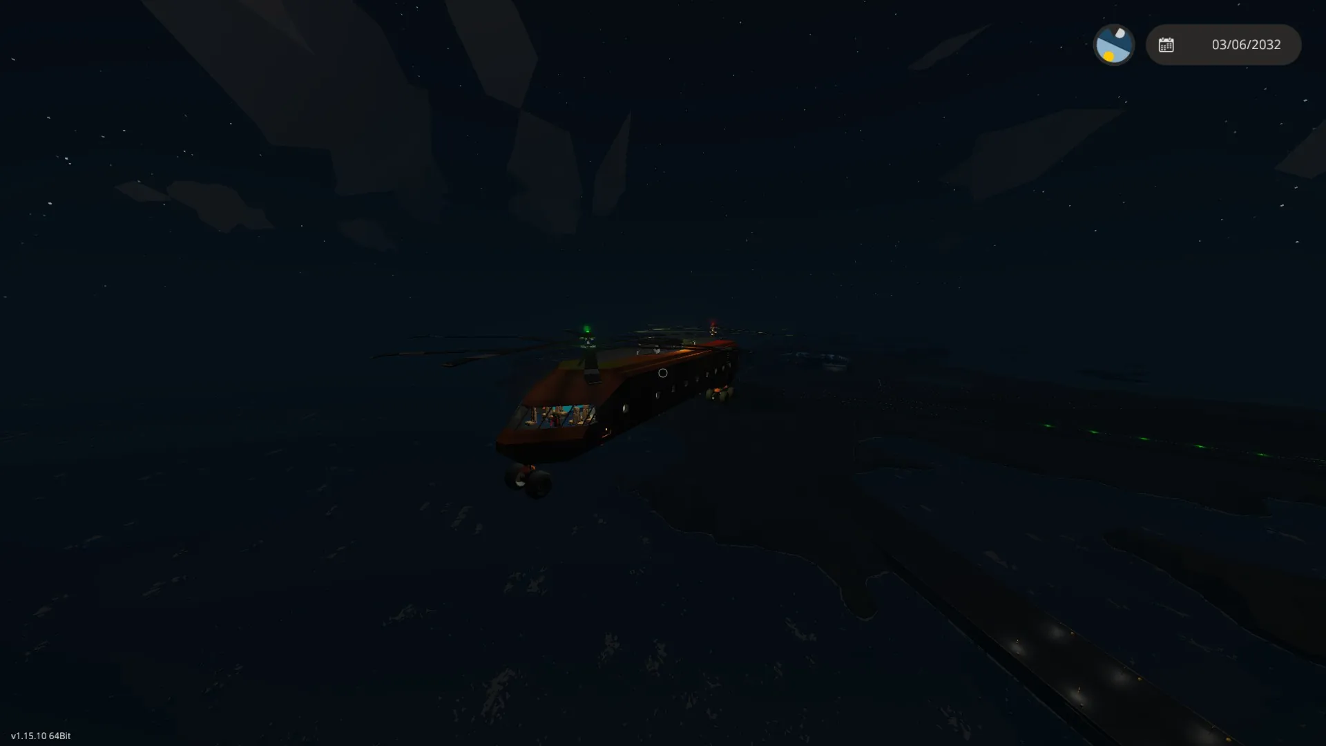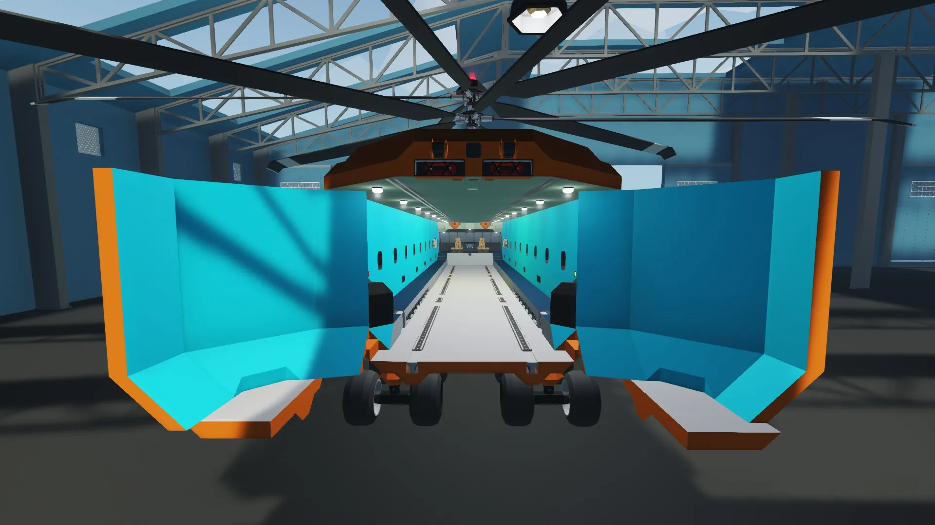 3. Stability and Lifting Capacity - This helicopter is relatively stable, but really doesn't like sitting still. It will start to smoothly ascend at below half throttle, and can easily take-off with 3 standard Stormworks containers at less than 0.75% throttle. After extensive testing, and some engine tweaks, I have found the weight lifting capacity to be over 7 times the C5b's own empty weight, or over a hundred thousand mass! However, the safe lift capacity is greatly reduced while lifting solely with ropes because of the nature of ropes in Stormworks. (Ropes can suddenly contract and slam the helicopter into the ground if you lift too quickly, as I learned the hard way, lol)