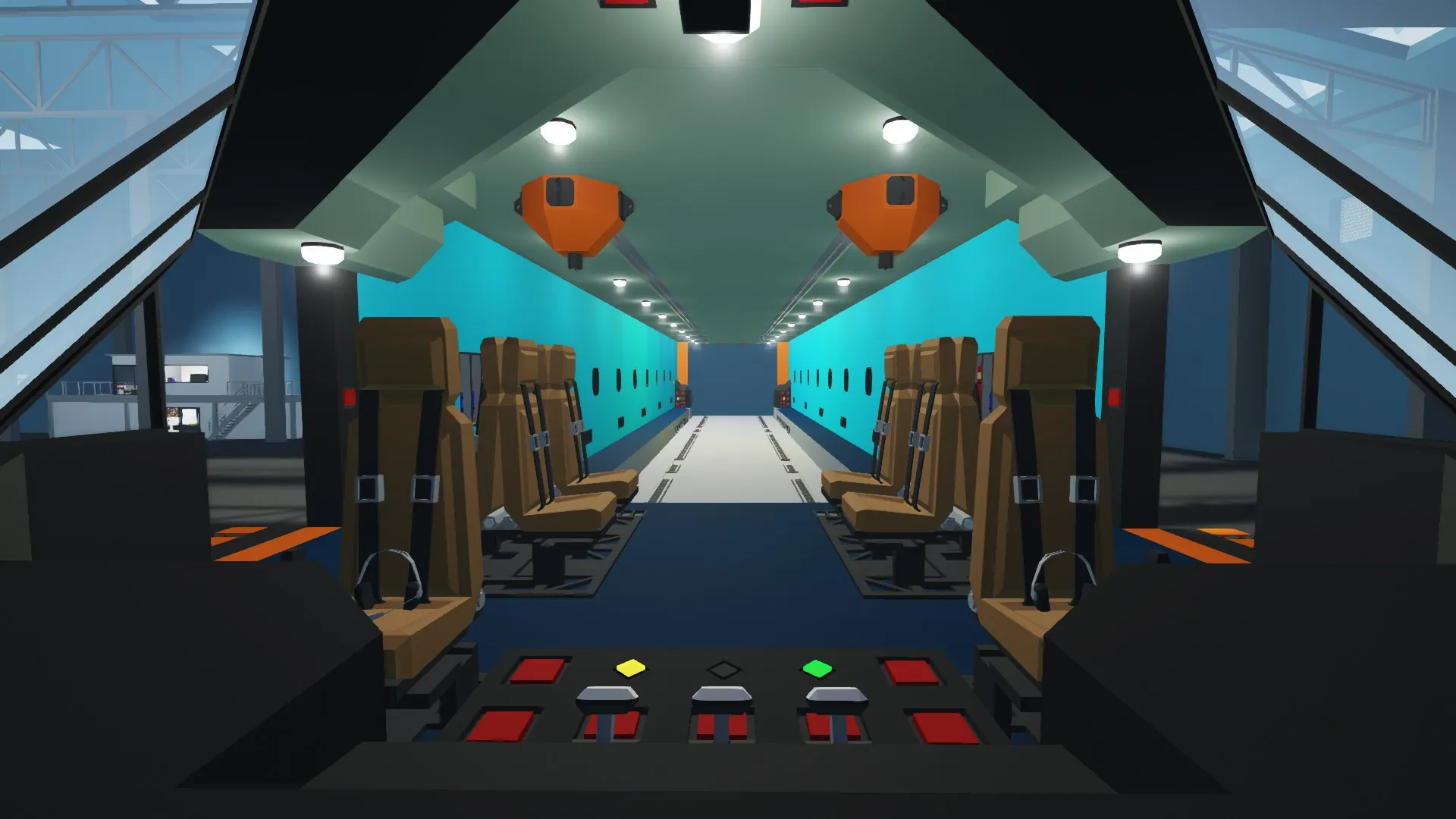 The loading system for the interior of the fuselage is quite simple, the controls are at the rear and you have very little to look at, there is a lever to control the roof mounted sliders' speed, along with labelled buttons to either pull cargo in, or push cargo out. The final controls are the electric connector release and the container slot activation flip-switches (of which there are three, where one is the closest to the cargo bay doors).