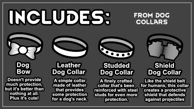 Credits to Shenanigans for let me use part of his code and textures of the mod [url=https://steamcommunity.com/sharedfiles/filedetails/?id=2644644983]"Dog Collars" [/url]