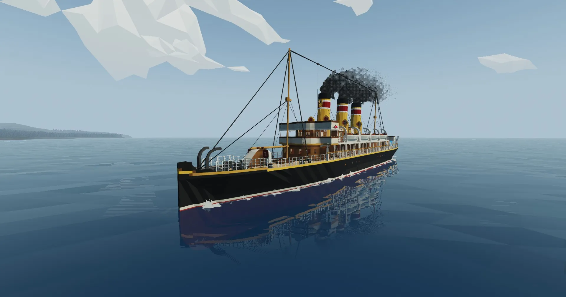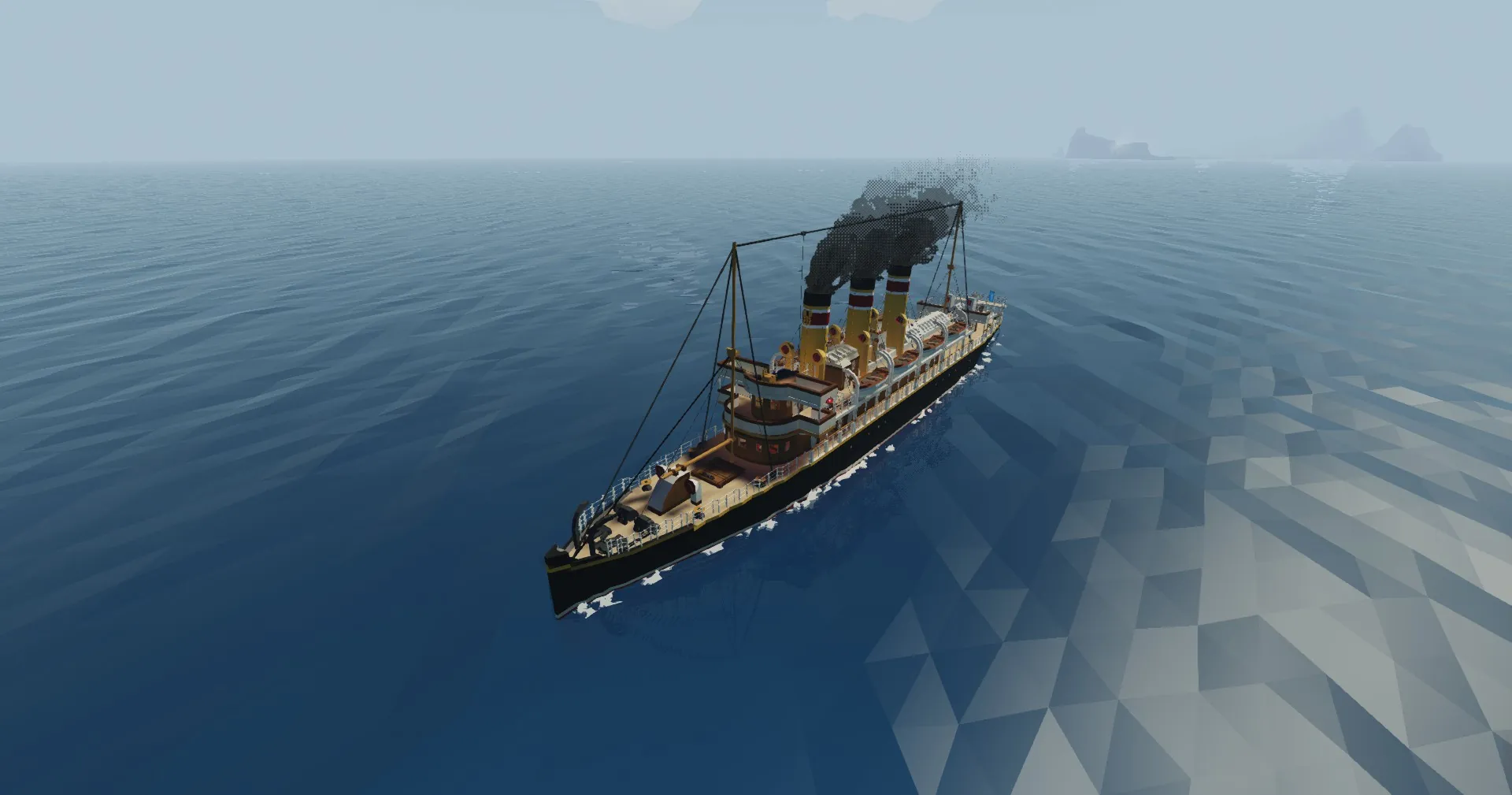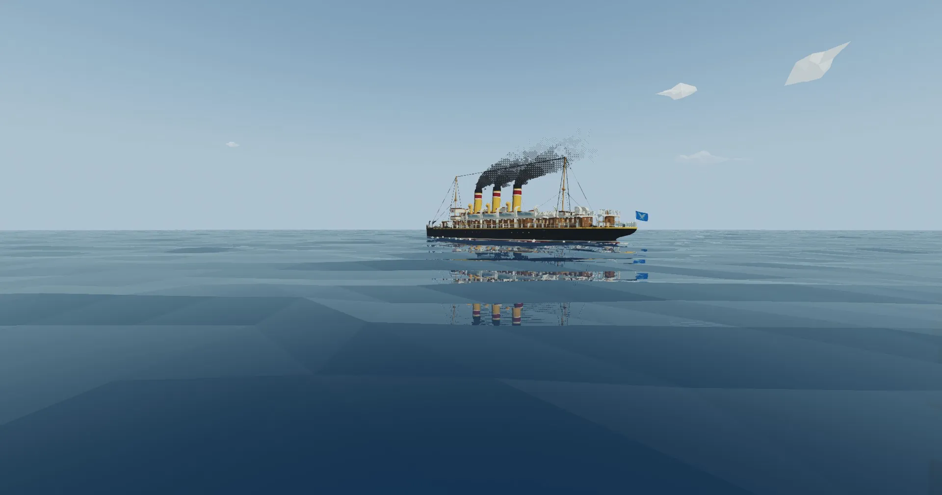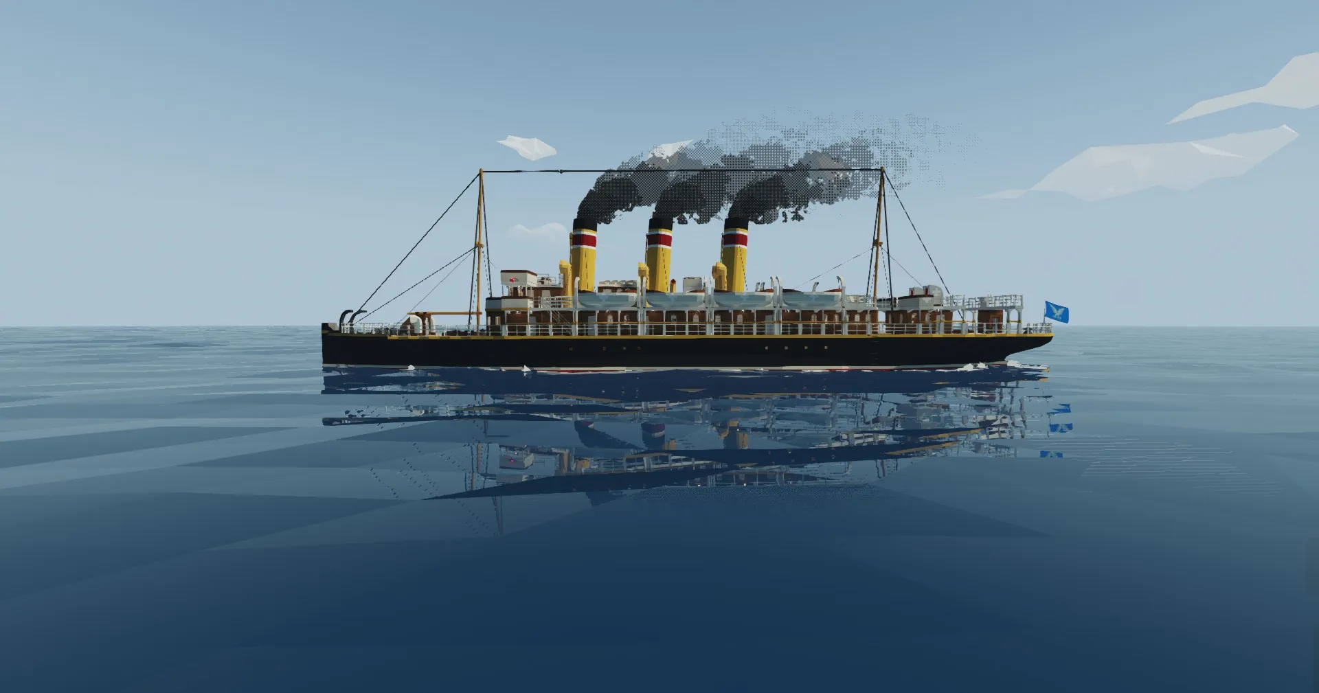 I have had to repaint some parts of the ship because i painted different colours on the funnels and some markings on the hull and walls, but i hope the ship look like it should do now. The flag of stormworks on the aft was not there on the original, but i decided to maybe keep it