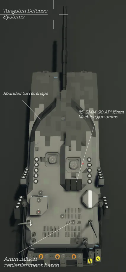 You will find multiple fuel tanks, batteries and a pump in the back of the turret, these can be taken out and used to replenish the tanks fuel/batterie reserves.