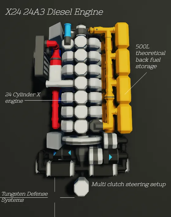 The engine can be accesed by going to the back of the tank and opening "Maintenance hatch"