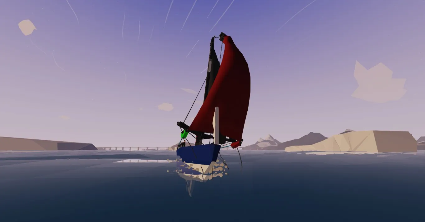 -> To raise the main, push the "main halyard" button and wait till its about halfway up the mast, then deactivate the "Shrink Main" button to tension the sail.