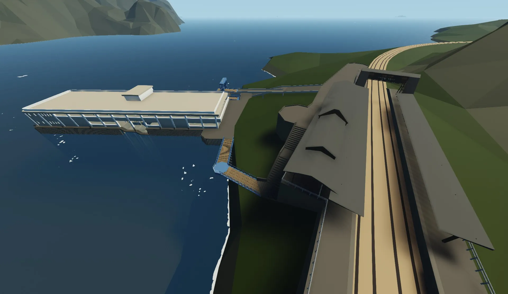 A transport hub at Sawyer 1_3, the train station is styled after Aso Station in Kyushu, Japan, while the pier is styled after the Kwun Tong Ferry Pier in Hong Kong.