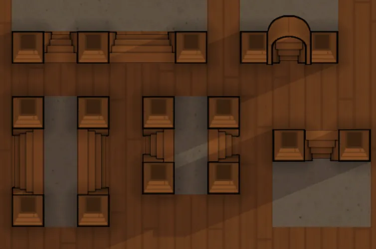 Added single and double staircases to make it look like your pawns go up or down floors. The staircases are made to also fit under door frames.