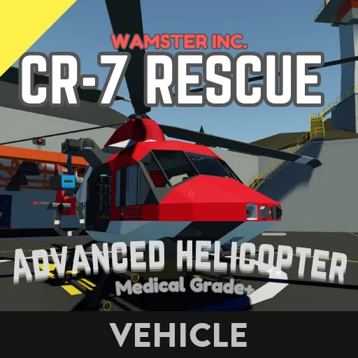 The CR-7 is a advanced helicopter designed for rescue missions in career mode. It can reach a top speed of 200 kph and has all your equipment needs! It has a total of 6 seats (Excluding pilot seats) for passengers and 2 harnesses that can be lowered to the objective. This helicopter also features a transponder locator and radio controls for emergency's.