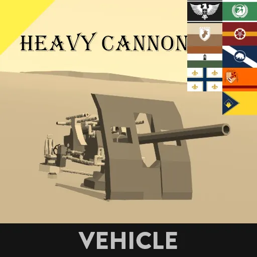 the Heavy Cannons are large-caliber explosive guns that are commonly used as the main armament of an Airship, Naval Vessels or any defensive ground structures.