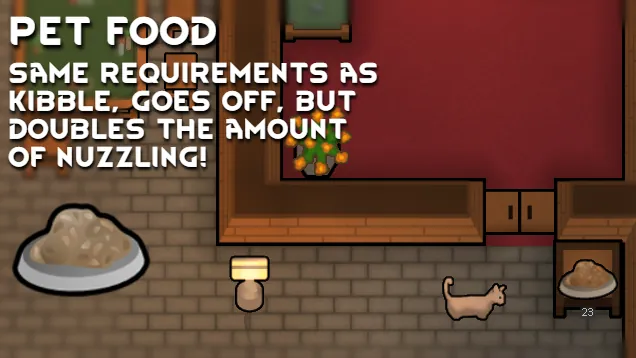 Your Colonists get some food options, some progression and minor buffs after putting in the effort towards better foods. But your animals just get kibble. Weird huh?