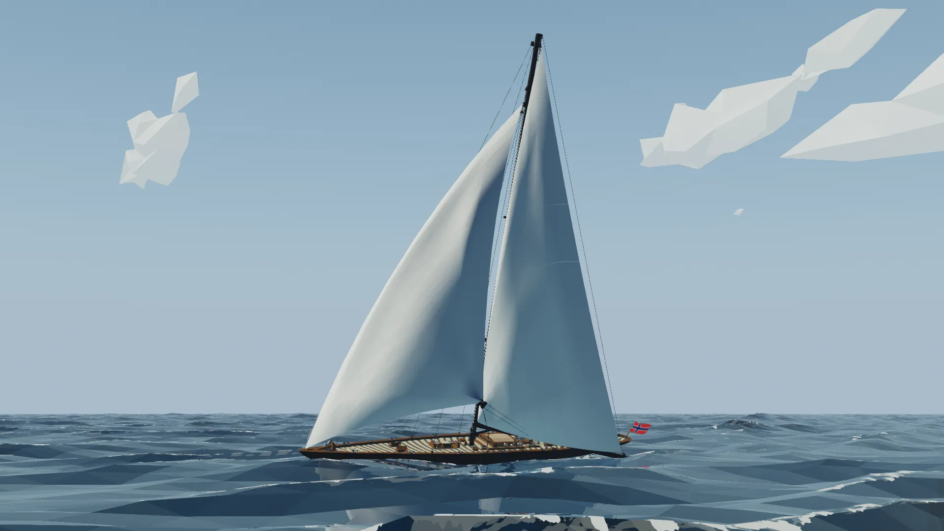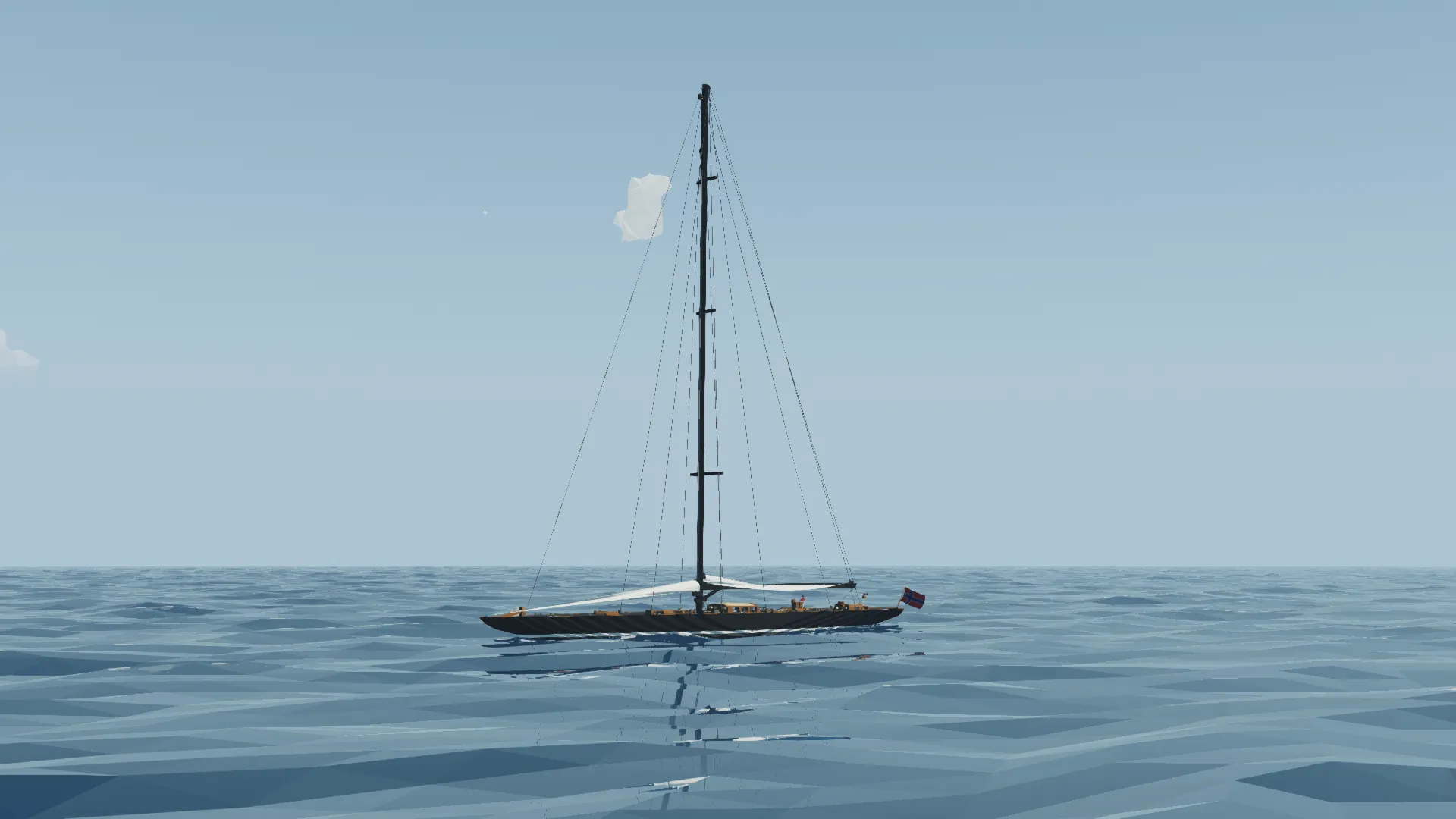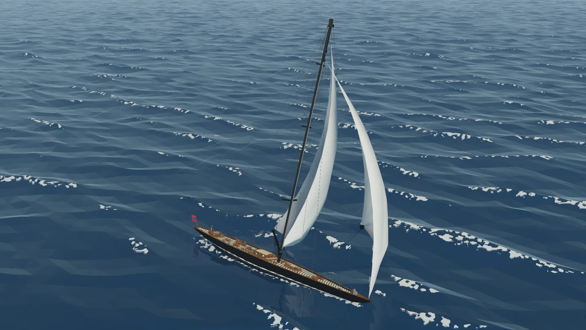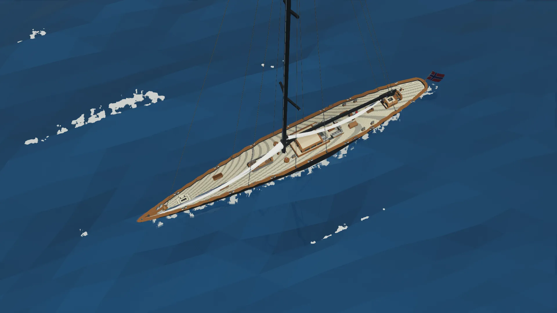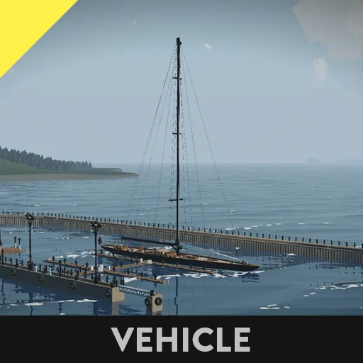This is the Fictional J class yacht Noregr (meaning Norway), based off of the J Class Lionheart, it is 3m longer and much more capable. The J class yacht is a type of large racing sailboat, known for their elegant design and role in the America's Cup in the 1930s