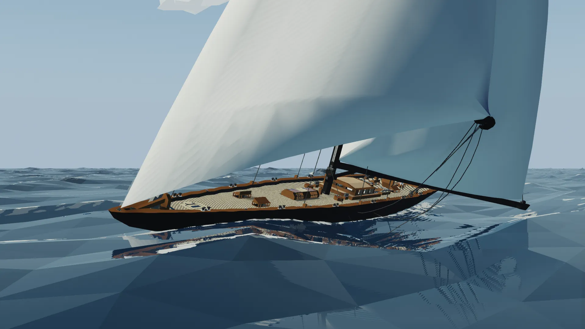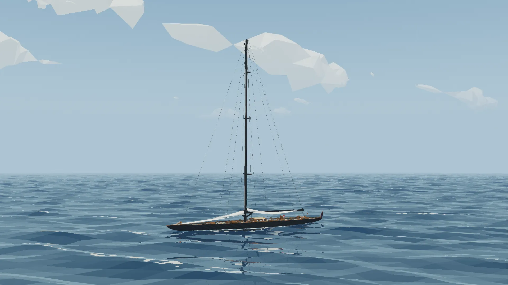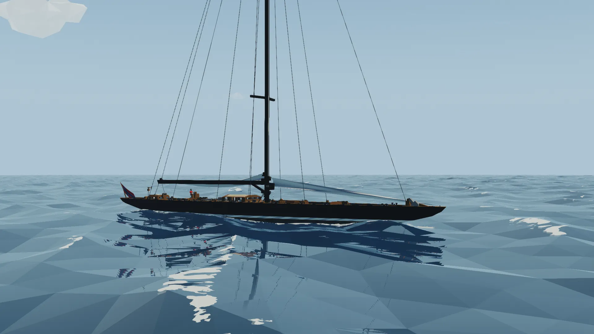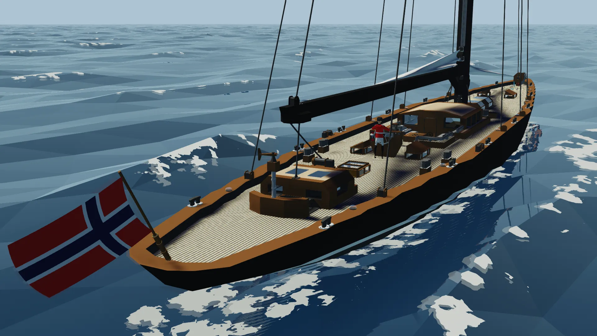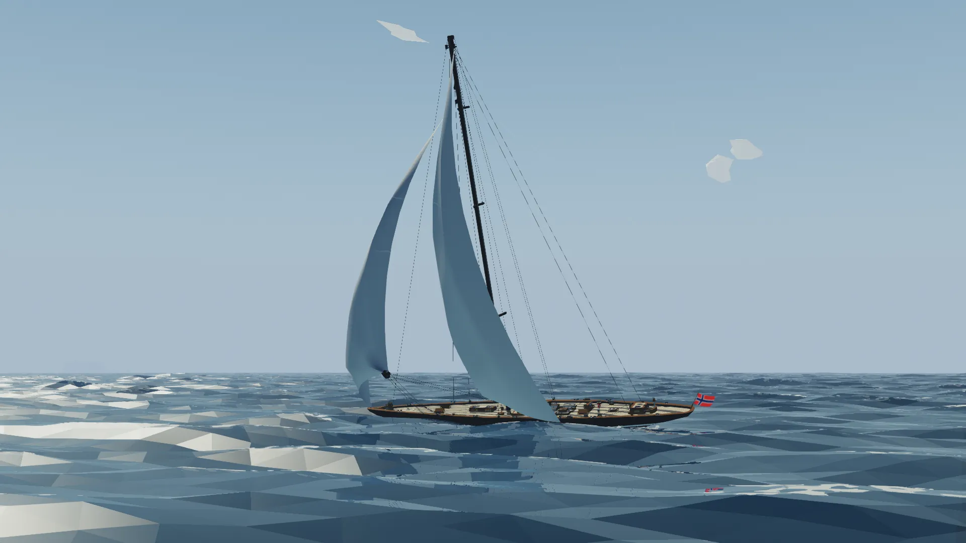 This is the Fictional J class yacht Noregr (meaning Norway), based off of the J Class Lionheart, it is 3m longer and much more capable. The J class yacht is a type of large racing sailboat, known for their elegant design and role in the America's Cup in the 1930s
