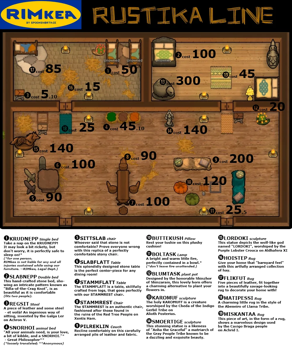 [b]Rustika Furniture[/b] [i](at start for tribals; else 500 pt normal research bench)[/i]