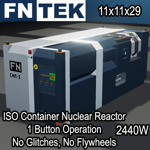 Very easy to use nuclear reactor, completely self contained and glitchless. It outputs a steady 2440 swatts and was tested to be stable both on the arid island and the arctic. Being self contained, it is an excellent choice for nuclear submarines.