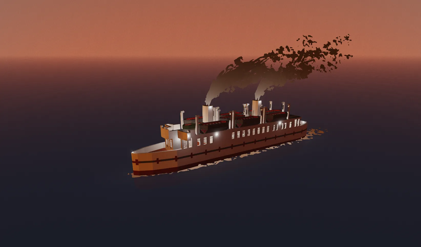 Lifeboat close to the number one funnnel. Then a breaking sound and the funnel dissapeared. Gerp got pushed in the