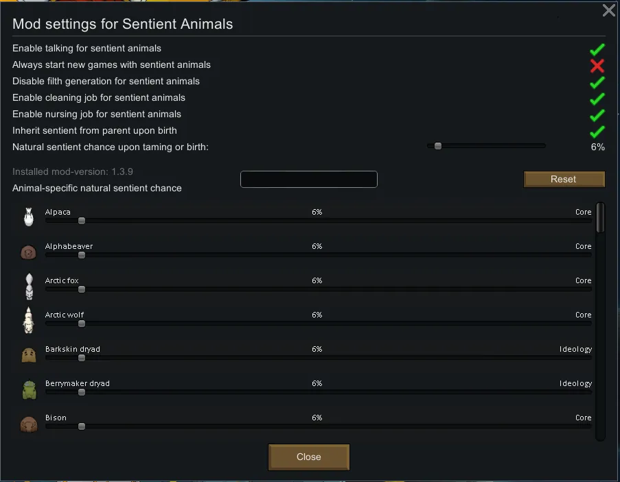 - Added an option when [url=https://steamcommunity.com/sharedfiles/filedetails/?id=2497919470]Animal Weapon[/url] is loaded to only allow Sentient animals to wield weapons