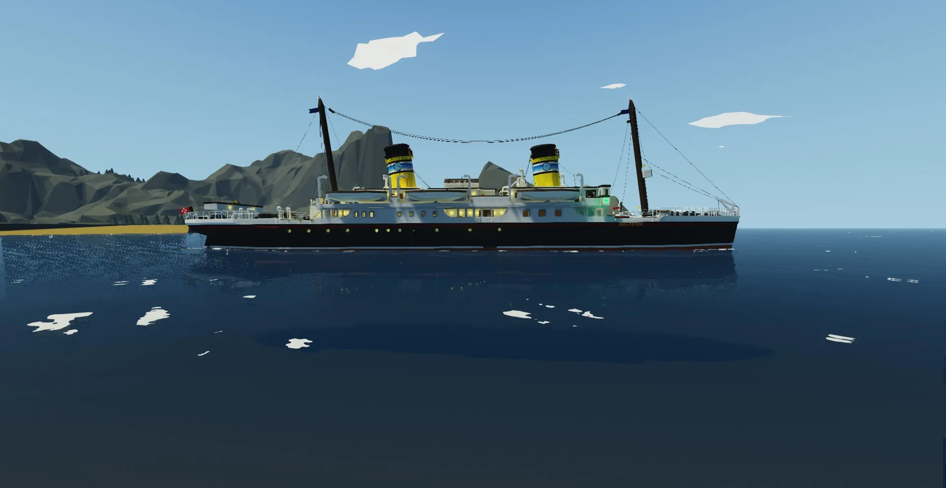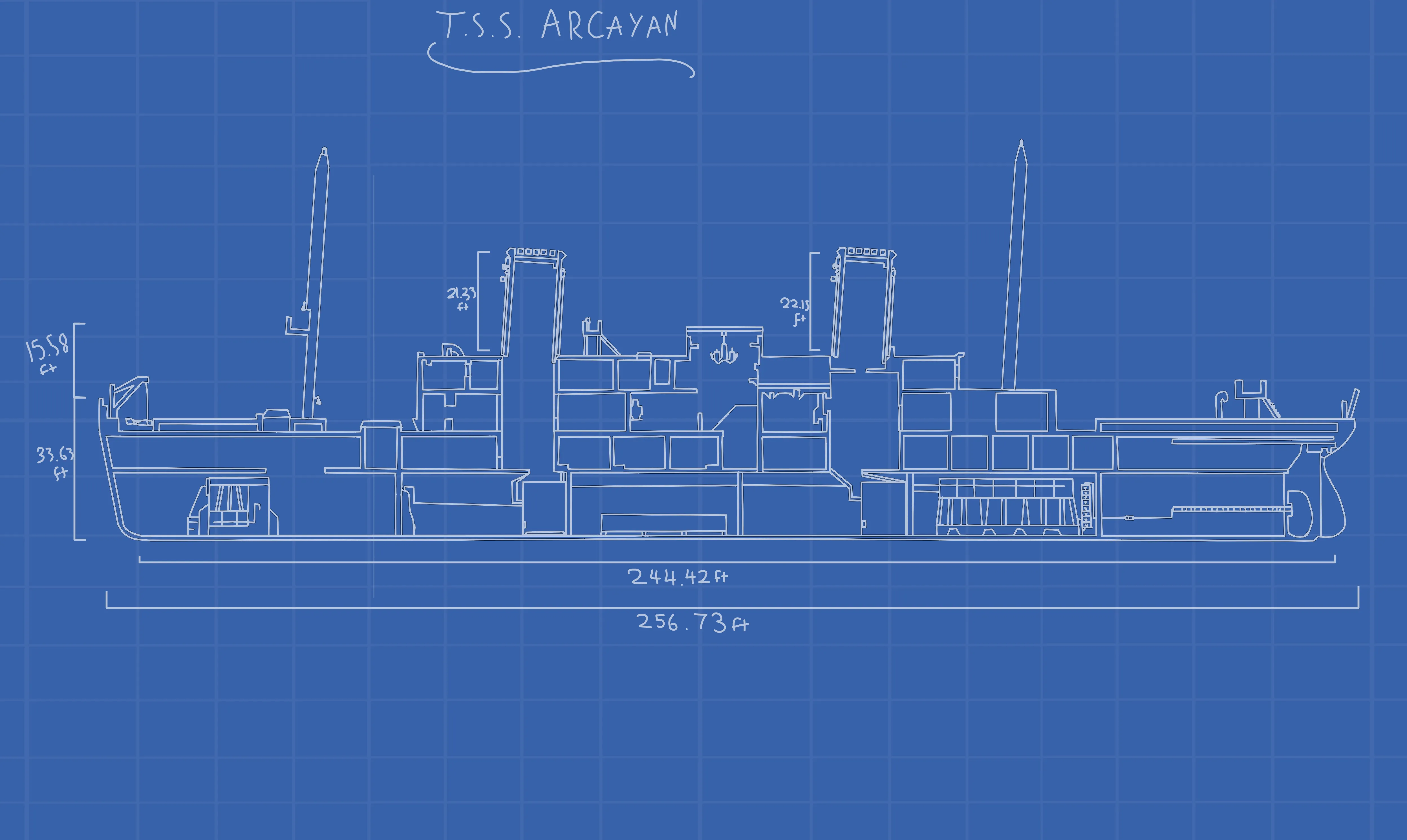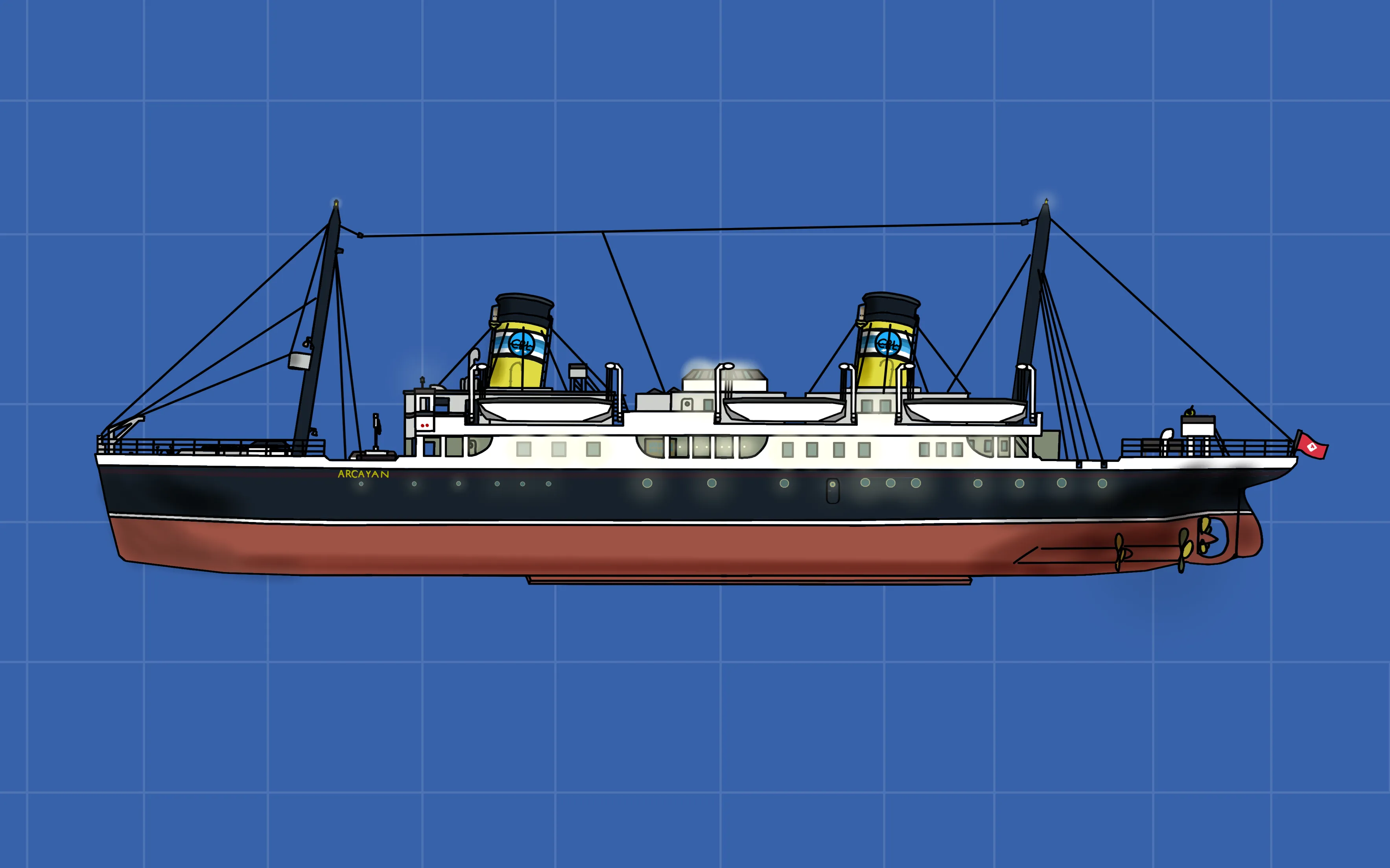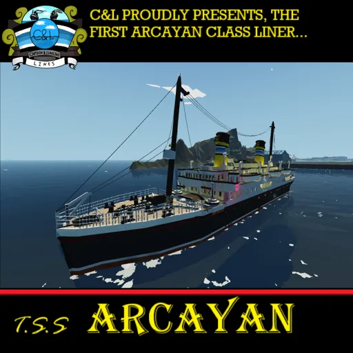 T.S.S. (Terroxian Steam Ship) ARCAYAN, was made by C&L lines (Captain and Lukelini Lines) during the golden age of Terroxia's history. She wasn't built to be big, but to be as fast as possible. She would be one of the two ships in her Class, the other one being the T.S.S. Myan. Her top speed is 51 knots with all boilers on, and while her sister ship Myan was much faster than her at a whopping 62 knots, ARCAYAN was, and still is, the pride of C&L Lines.