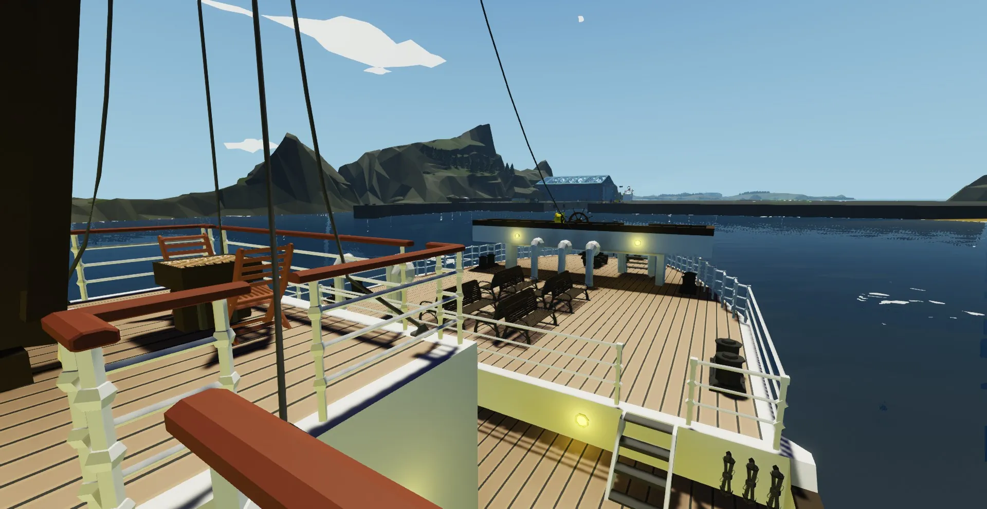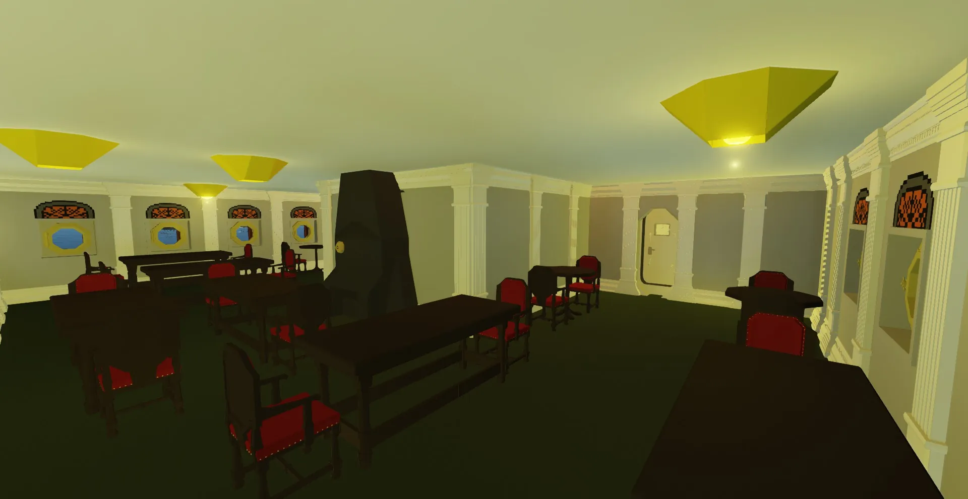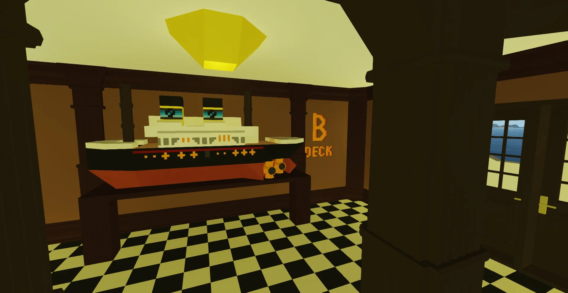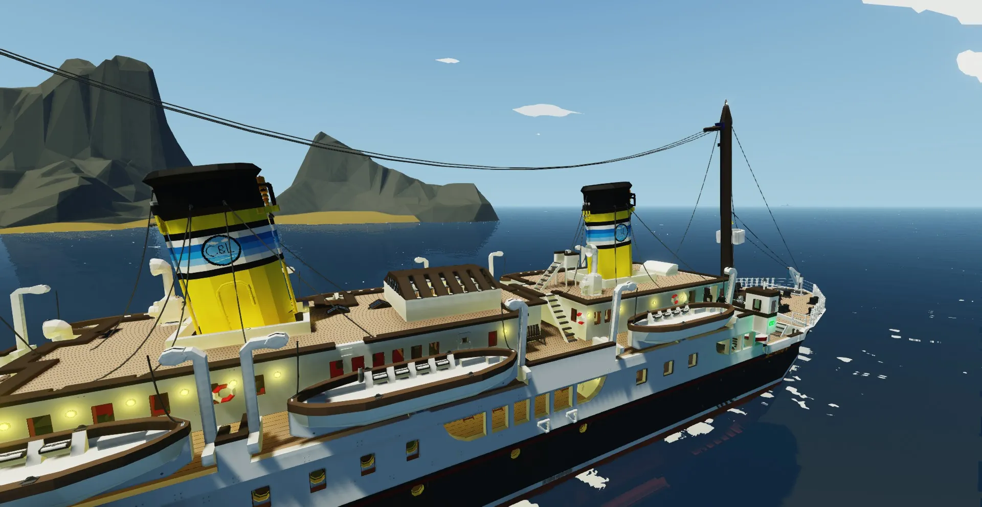 the life boats, chess table, and the generator are not my designs just pointing that out so people don't hate me, all the rest of the boat however is custom made. please also take note that this one of the first ships i have ever built in storm-works so its not perfect... but its still really cool. Infinite Electricity has to be on for this ship to work. Also you don't technically need the Search and Destroy DLC, the room with guns just wont have guns...