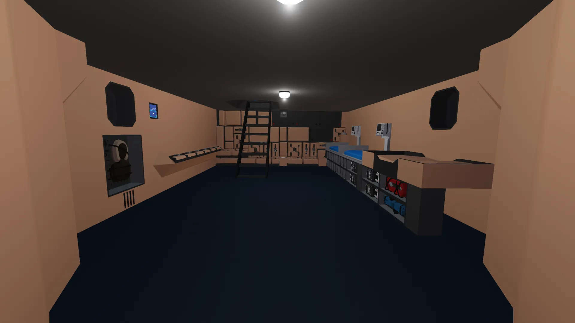 The boat has a FLYING JETSKI which has basically infinite range and is equiped with a light and two first aid kits.
