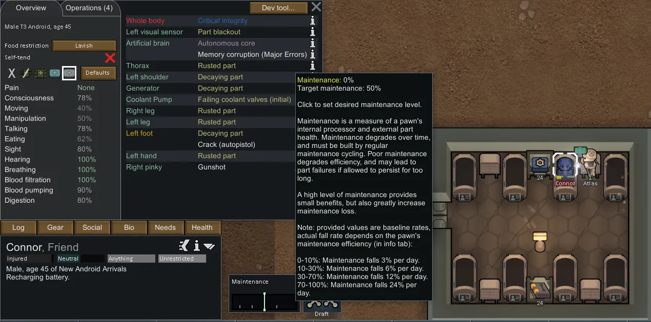 [*] A new "mechanic" work type that fulfils the role of doctors for mechanical units, using crafting instead of medical skills.