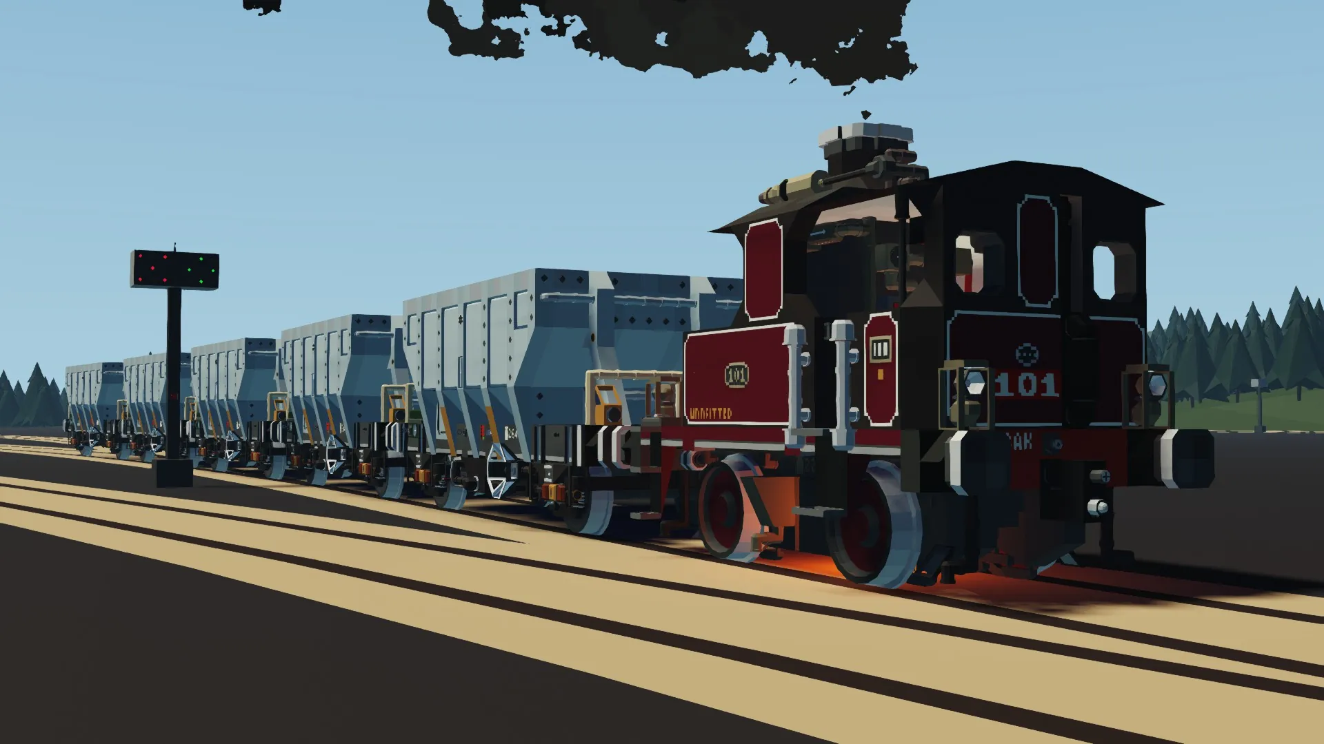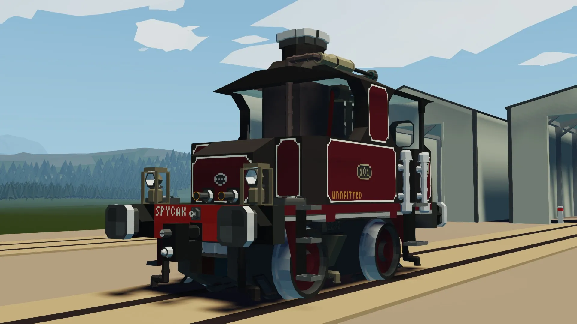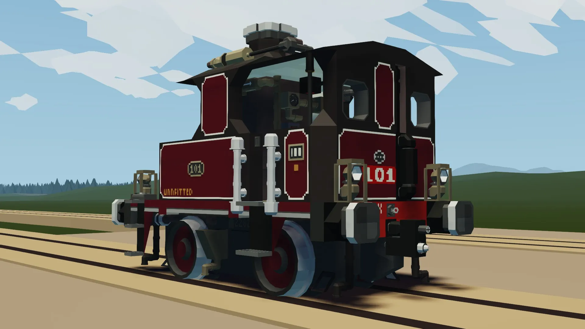 The GSIR had constructed the 100 Class mainly for yard shunting across the Sawyer Isles, with a few being stationed at the South Sawyer Yard to manage the boom in goods traffic during the 1910s. While the vertical boiler shunters had performed reasonably well, their design was already outdated by the interwar period and outmatched by the shunters constructed by the SRFB. The growing density of freight traffic along the network also showed their weakness compared to more modern counterparts, especially the diesel shunters that they had begun to brush shoulders with in the post-war era. Only a couple 100s remained in service by the 1950s, working around the Camodo Locomotive Works and quarries. Thankfully, all the 100s that survived after WW2 were preserved, most notably SRFB 101 in 1951. This build represents the first-of-class in her maroon livery she wore during the SRFB's 1921 Gathering Gala.
