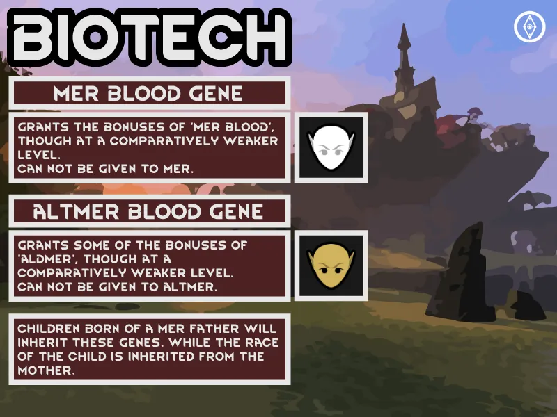 [*] Additionally, children born of a Altmer father will inherit the 'Mer Blood' gene, but only if the child is not a Mer.