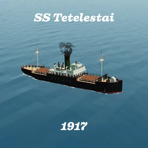 Built in 1917 by Ashley & Co., the Tetelestai was just another cargo ship of S.P.R. She was simple and comfortable for her crew of 22 as well as being a one off design. Though she was a one off, she was built like a normal cargo ship she wasn't much of a sensation compared to S.P.R.s much more glorious passenger liners of the time.