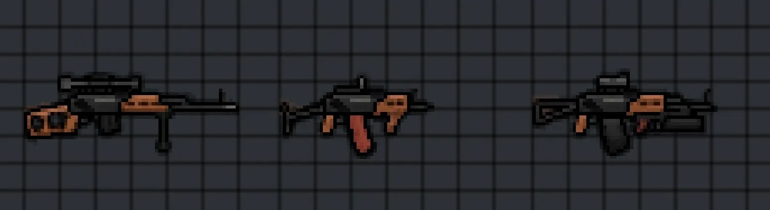 ────A gas-operated assault rifle designed by Midworld rebels so that even less-skilled countries can manufacture it. High caliber bullets have high killing power, but poor accuracy.