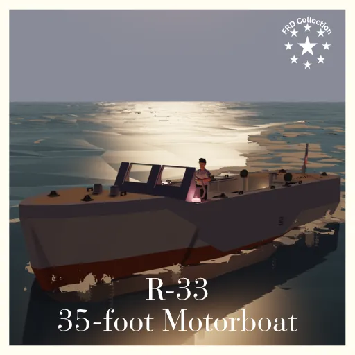 The R-33 is a small WWII era motorboat used for small personnel transport and ferrying between vessel, later variants would be mounted with small machine guns for coastal patrol.