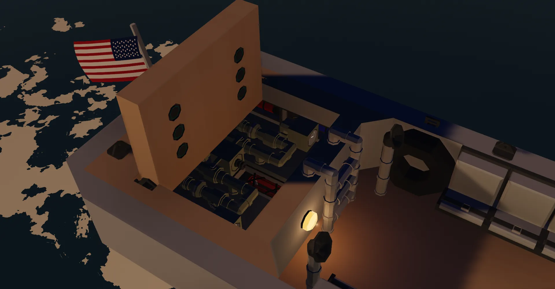 [*] Hatch on the stern for fuel levels and fill port.