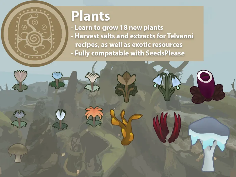 These plants are fully compatible with seeds please. Seeds can be obtained from harvesting the plants, and created using the appropriate resources, though certain seeds are comparatively more difficult to create. Excess seeds can also be turned into their appropriate salt or extract.