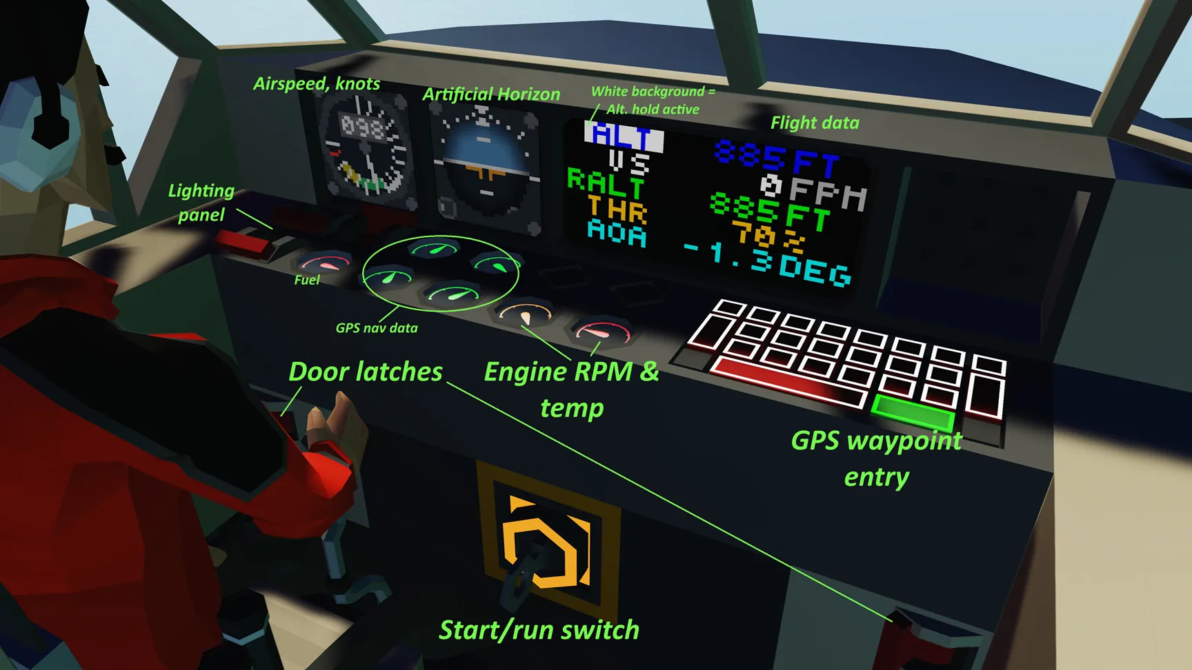 When landing: ensure flaps are down, adjust speed to ~80 - 85 knots and use a shallow approach angle. Throttle will automatically reduce to 0% on touchdown to reduce pilot workload during landing.