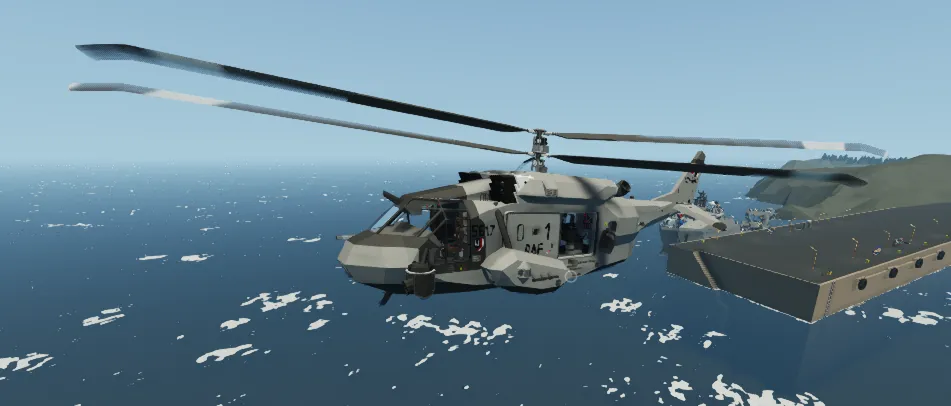 GS-42 Sea Sovereign is a amphibious helicopter designed from ground up for search and rescue operations in hostile enviorments. Cabin (when doors are closed and sealed) is protected from all possible enviormental hazards, including radiation. But don't get fooled by all this shielding, with its powerful jet turbine engine this helicopter is very nimble and fast achieving speeds up to 490 km/h. It's rumored that the doors are a bit faulty due to their weight though.