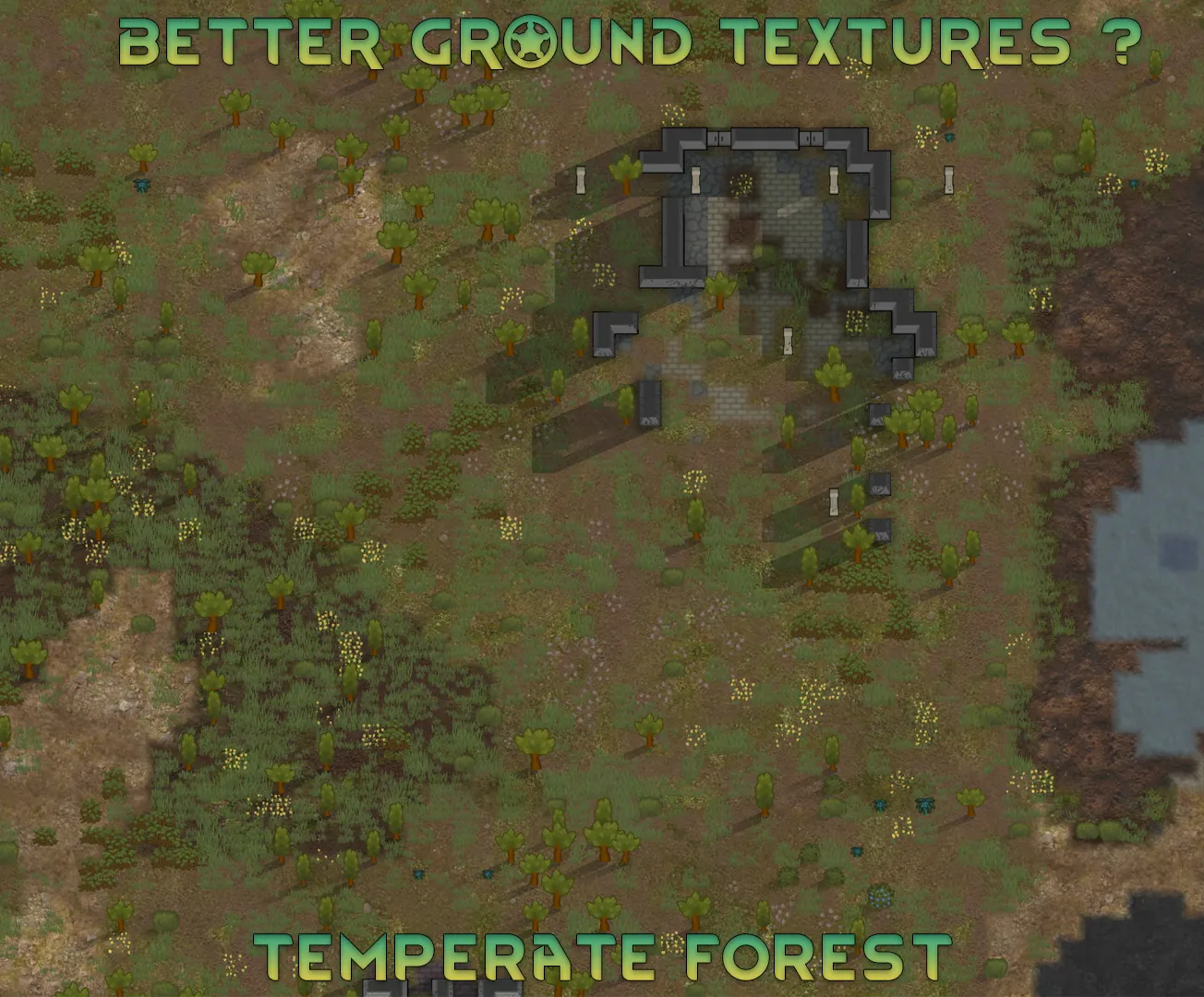 将更常见的地面纹理替换为更多样的纹理,仍然尝试真实的原始Rimworld外观和感觉。