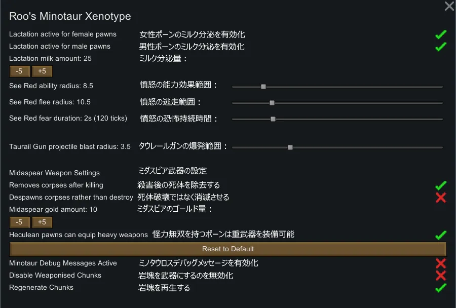 Roo's Minotaur Xenotypeの拡張モジュールで、ミノタウロスをこのRimworldに迎え入れましょう。複数のミノタウロス派閥と戦い、友好を深め、ウシ型重装歩兵の軍隊を作り、新しいバックストーリーや服装でポーンに肉付けをしましょう。
