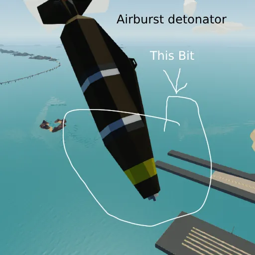 when making your own bomb, the detonator will be the nose of the bomb, you need to attach the "arm" input to whatever mechanism you use to arm your bomb, weather that be the launched output from a hardpoint or a delay block.