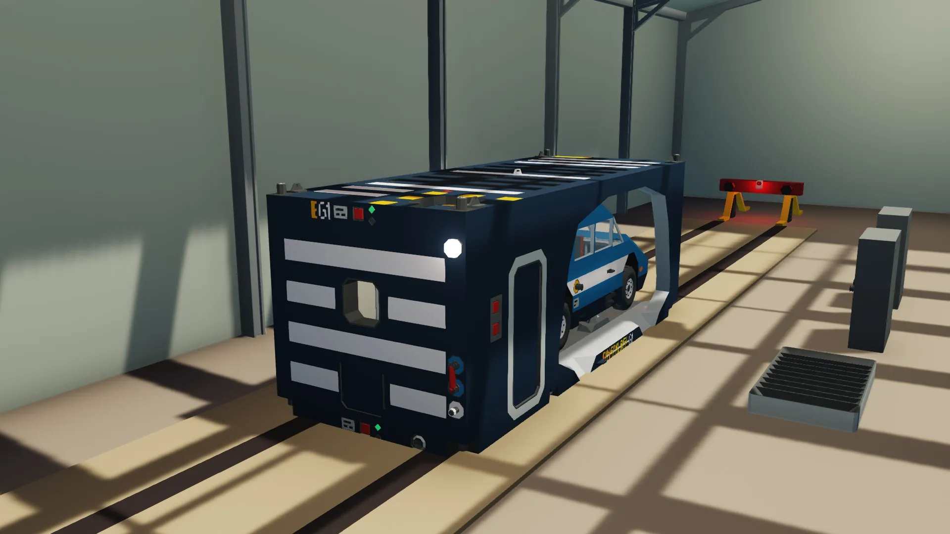 The Garage Container stores a small car (by default the [url=https://steamcommunity.com/sharedfiles/filedetails/?id=3470056009]"Maus" Compact Comfort Cruiser[/url]). It also provides repair equipment.
