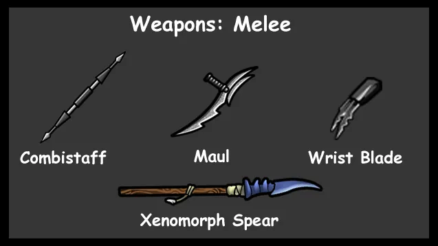 [*] Combistaff: Simple melee weapon that can be thrown to pin enemies in place
