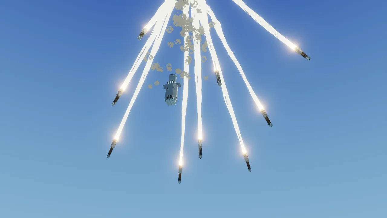 This is a ballistic missile with a range of 170 [km] and 9 child missiles. It flies at a maximum altitude of 35 [km] and delivers child missiles with nuclear fuel rods to the target point!
