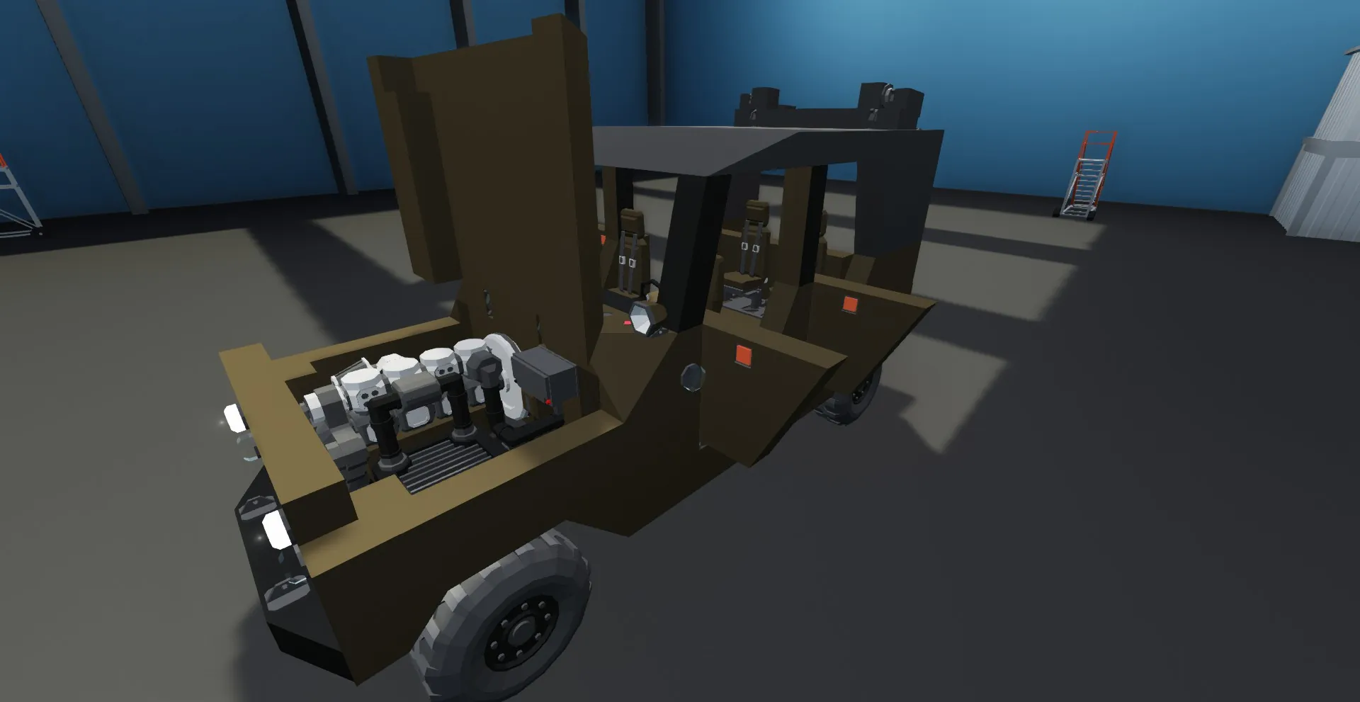 Just a basic, ol' Russian UAZ-469 that can seat up to 5 people, contains a fire extinguisher, a welding torch and a rope along with 2 frontal and a rear rope anchor, an openable hood for easier repairs and weighs about 2000.