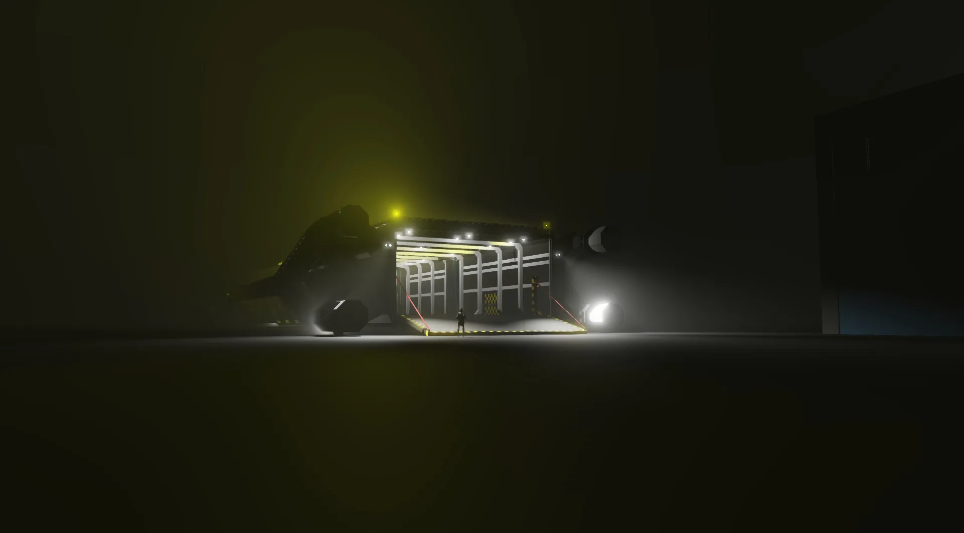 The Cargo bay is the main focus of this build, it has a rear cargo door that slides over the top of the ship and locks, also carries a floor elevator that stretches most of the cargo bay and can be used when in VTOL (set alt hold to 10)