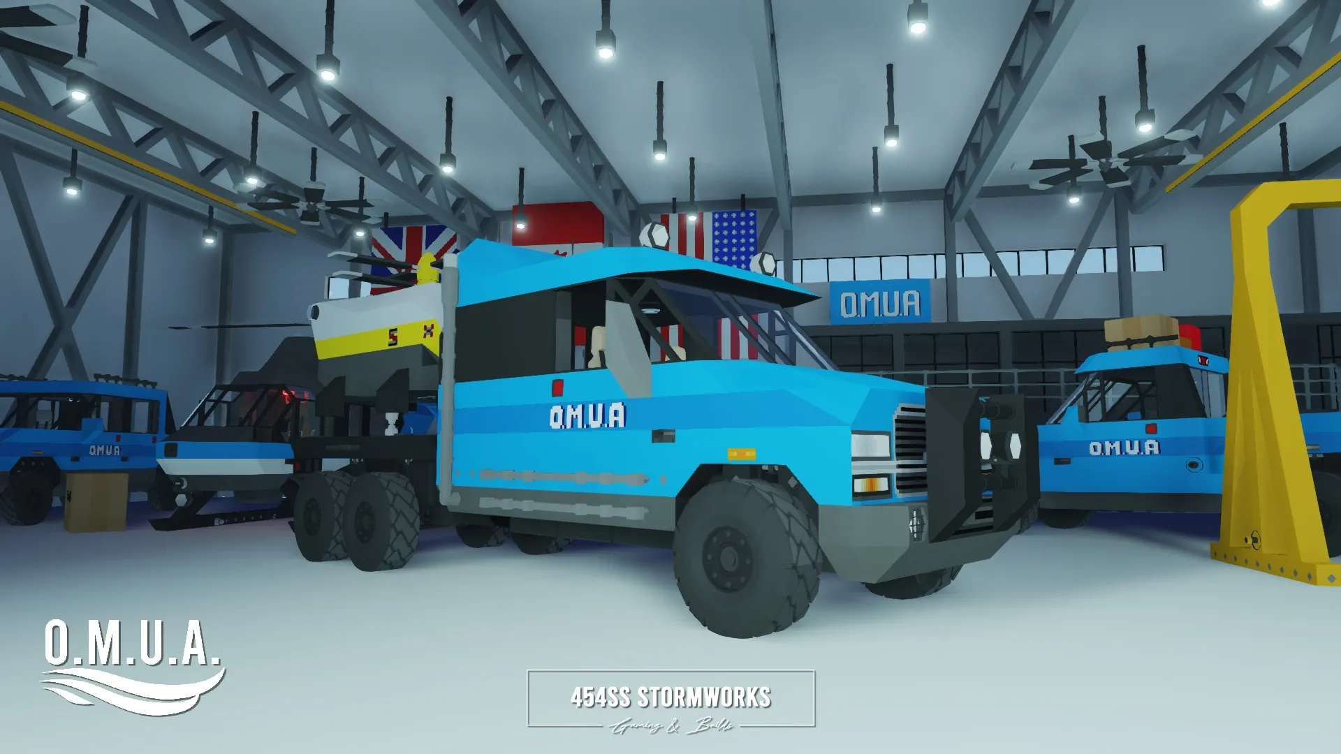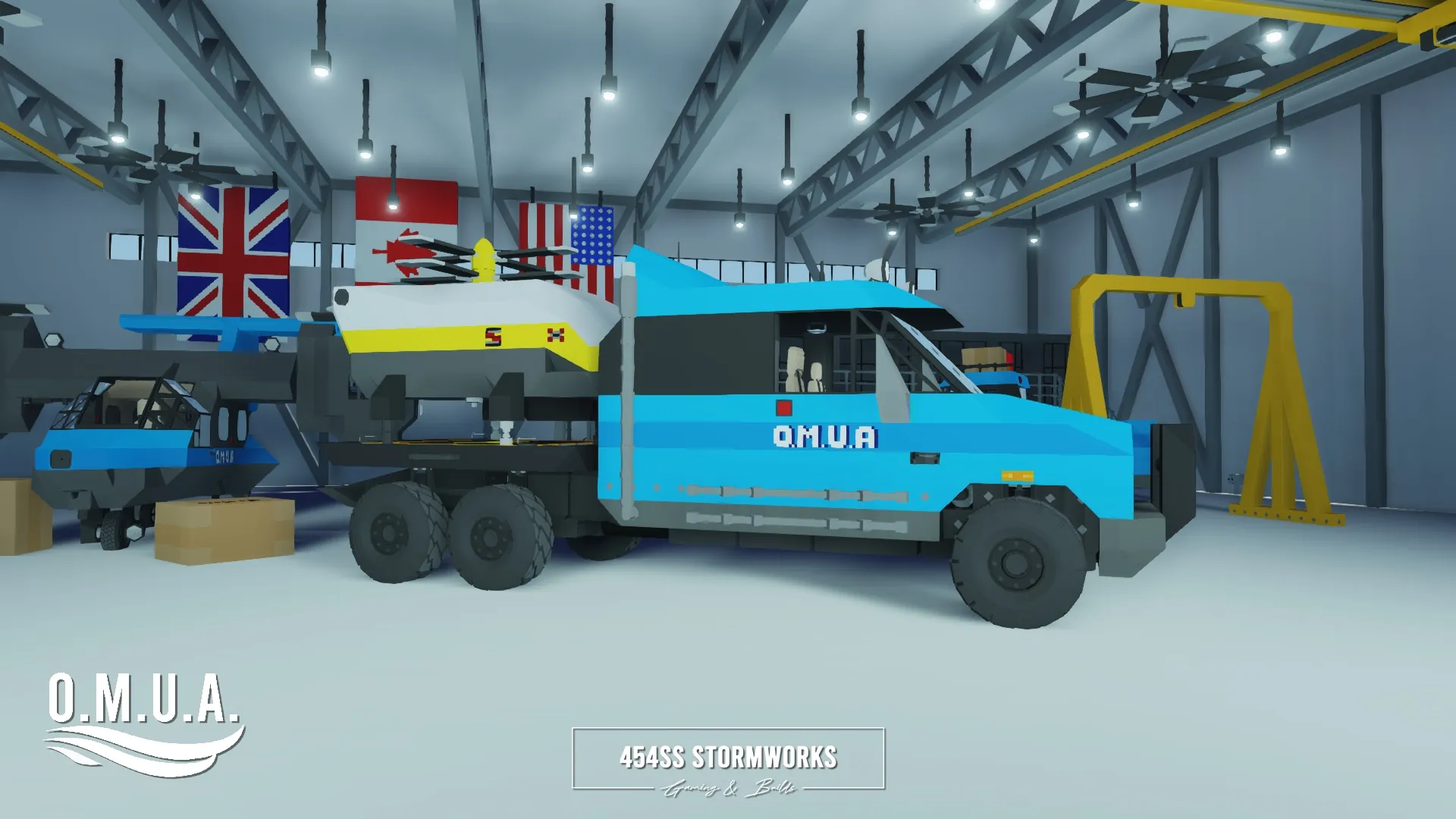 The Buckel Stampede is a Class 6 medium-duty commercial-grade truck, produced both as a commercial and consumer vehicle since 1989, featuring a supercharged 12 cylinder engine, massive 2200 L fuel tank, towing-geared transmission and hexasteer dually rear axle is capable of towing up to 25,000 lbs. This particular unit is owned by OMUA (Oceanic Marine Underwater Agency), a (fictional) multinational marine and research agency. The truck bed features a small drone command centre, and a small helipad with a RedSparo 3S Nyx LiDAR/Radar Drone, capable of scanning the topography of land and under water.