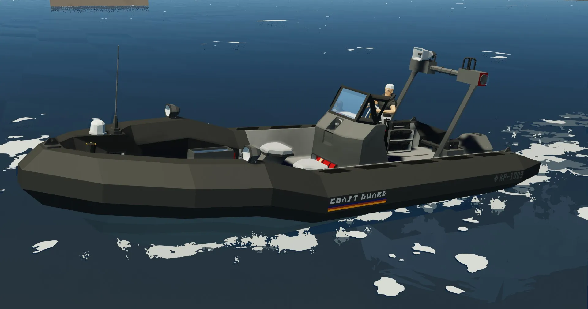 The KP1003 is a small RHIB, made for fast deployment. It can safely carry up to three (3!)* people if they dont mind getting wet and/or being blown away by the high ocean winds. Although the 1003 was originally made for civillian purposes, it was soon found that modified versions of it could be used for military actions.