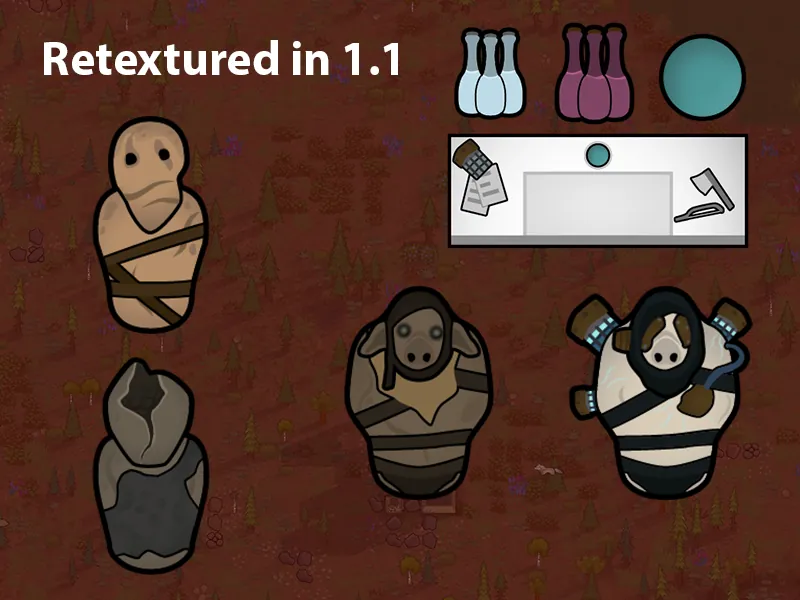 This mod adds in eight types of constructible servant based on the Amnesia games, each an equally horrifying abomination. The servants are made at an orb table, a new production table. The orb can be acquired from quests, ancient dangers and traders. Once the table is assembled, and the research researched, you can begin your journey of turning corpses into useful servants.