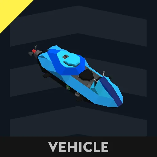 A small Jet Ski that has a top speed of 60 MPH. To start it you need to sit in the black seat and press 1 and then space to start to move, and then use W/S to go faster or slower. A/D is used to steer left/right