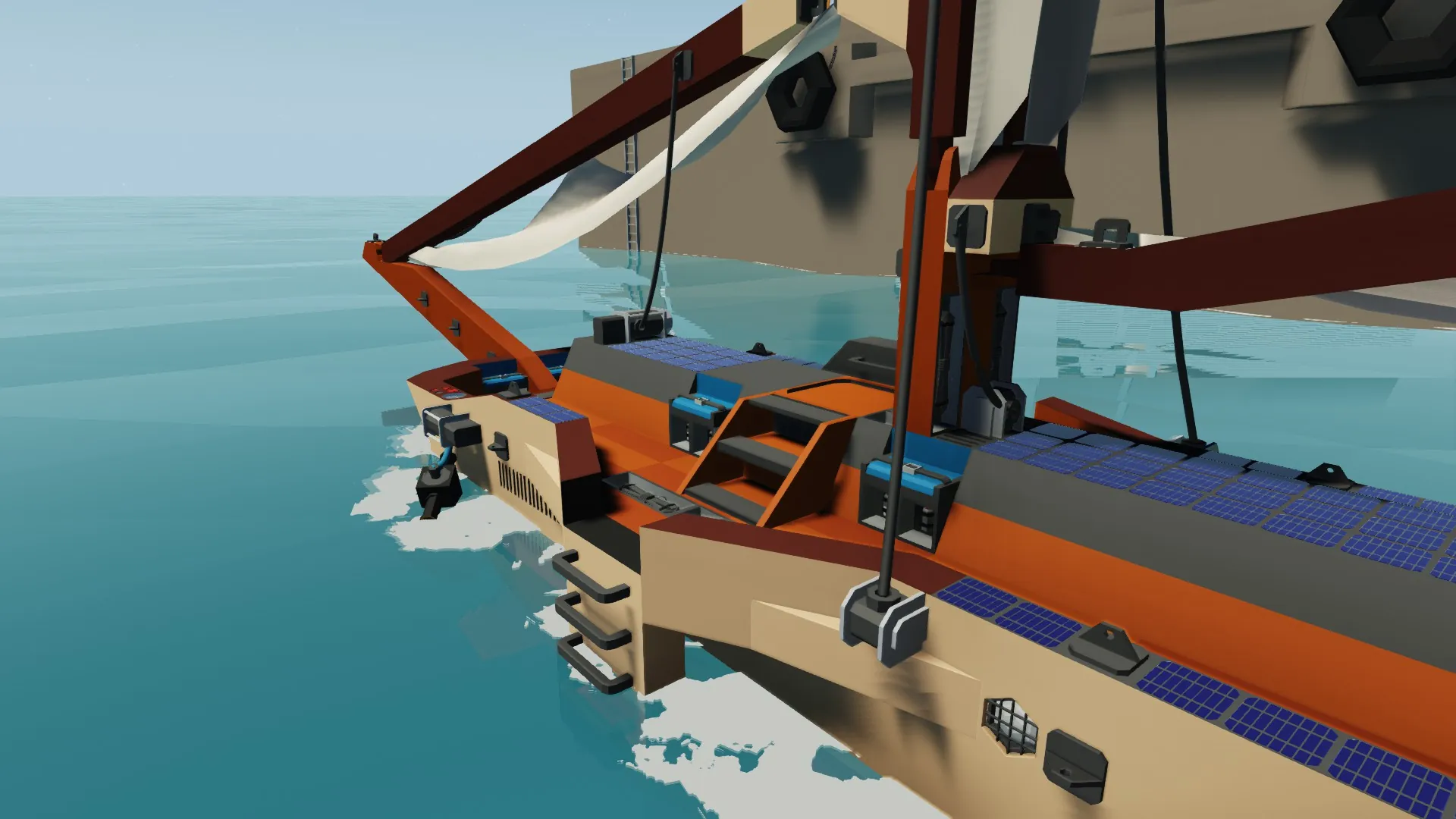 [*] Multiple power options (outboard motor, manual dynamo, solar cells)