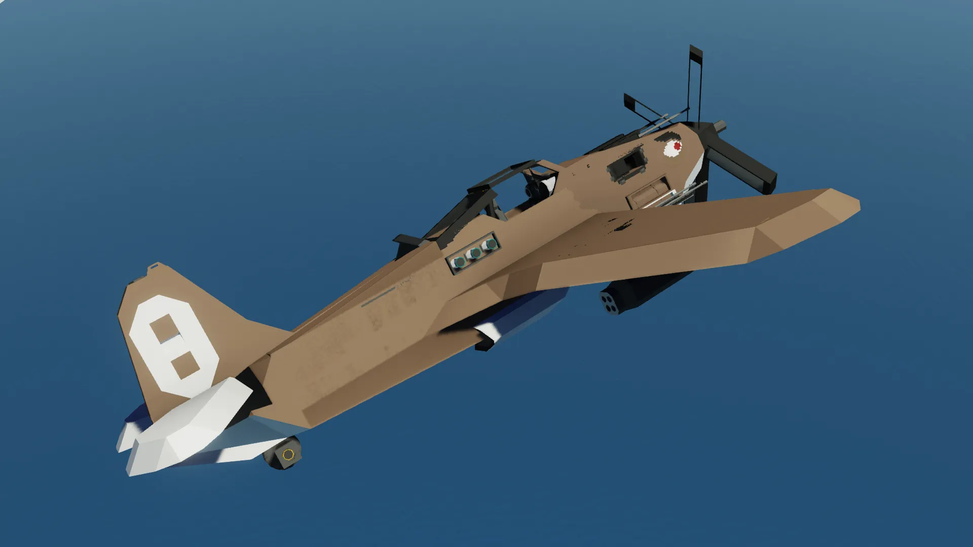 By using "propellers", now shells clip through without any hassle. Now you can enjoy two machine guns AND a heavy autocannon dead-center! If that's not enough, you get FOUR more machine guns and TWO rocket pods![/b]