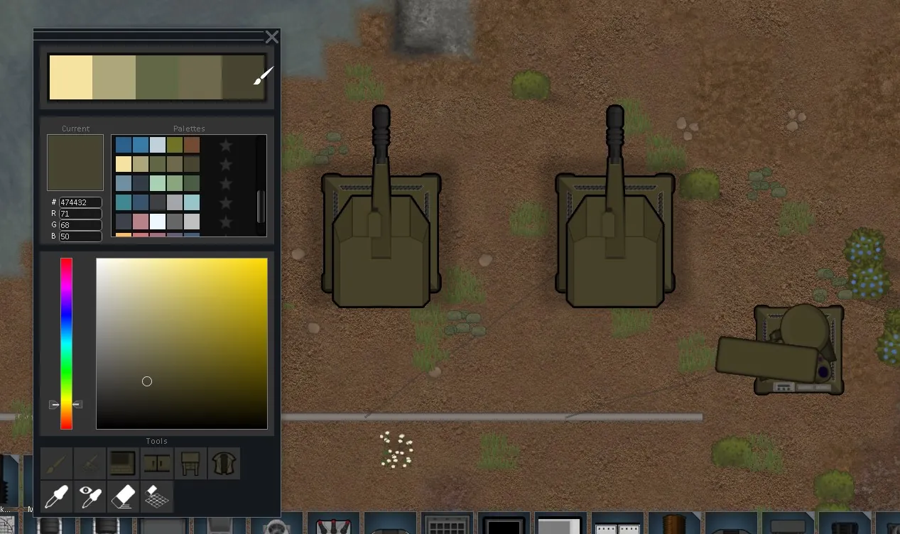 A painting tool to change the colour of most buildings, apparel, zones and constructed terrain. Multiplayer ready