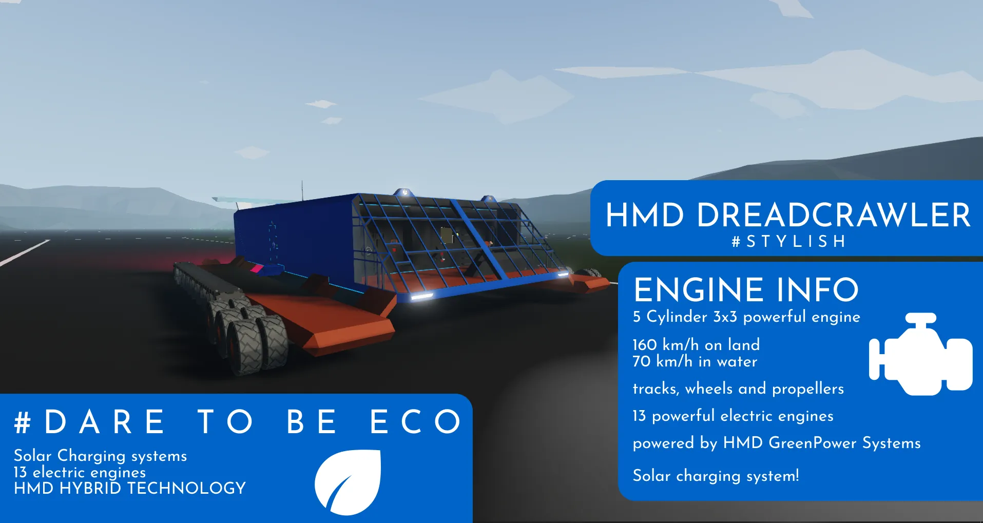 HMD DREADCRAWLER is a multi-purpose truck for special tasks. It can drive on land at incredible speeds and on water, gliding among the waves
