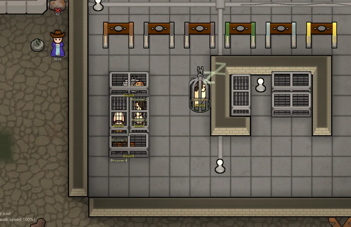- For whatever reasons, bound prisoner can fell off the furniture and will be brought back to their prisoner bed. Right click their bondage furniture to remove the "bound" status. RJW:Yes, it can happen if they receives extra intense "activities" with multiple pawns in short amount of time.